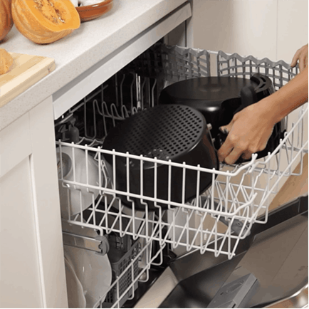 The fryer is super easy to clean thanks to its non-stick container. Also dishwasher-proof!